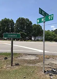 Immediately east of the Nash County line, NC 231 crosses Moccasin Creek which drains into the Buckhorn Reservoir. NC 231 also makes an immediate turn northward, an orientation it largely maintains for the duration of its route. Approaching Middlesex from the south, the road name changes to Nash Street. NC 231 runs through a largely residential area of southern Middlesex until approaching the central business area of the town. North of the central business district, NC 231 crosses a railroad owned by the Coastal Carolina Railway[3] and intersects US 264 Alternate at Finch Avenue. NC 231 continues north until approaching Rockside Road where it makes a turn to the northeast and exits Middlesex. The highway meets US 264 at a diamond interchange northeast of Middlesex. Beginning at the interchange, NC 231 makes a slow turn to the north, largely paralleling Turkey Creek, located to the east. NC 231 makes a reverse curve beginning at Nade Road, giving the highway a brief easterly alignment. Continuing north for 1.6 miles (2.6 km), NC 231 enters the unincorporated community of Samaria from the south. NC 231 intersects NC 97 in Samaria, before continuing north of the community. North of Samaria, NC 231 crosses Turkey Creek. Near Burgess Road, NC 231 makes a turn slightly to the northeast, an orientation it follows until reaching US 64. NC 231 meets US 64 at a diamond interchange southwest of Spring Hope. US 64 Alternate begins at the interchange and the two highways run concurrently for 0.2 miles (0.32 km) to the north. NC 231 reaches its northern terminus at a T-intersection with NC 98 and US 64 Alternate.[1][2]