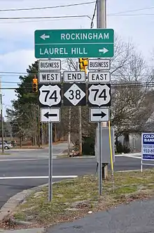 A two-lane rural highway, it traverses 5.5 miles (8.9 km), begins at the South Carolina state line where the road itself continues south as South Carolina Highway 38. Heading north, NC 38 connects with U.S. Route 74 (US 74) which is also a future segment of Interstate 74. Continuing north from the interchange, it heads into Hamlet, where it ends at US 74 Business.[2] NC 38 is named in honor of Louis Breeden, a Hamlet-native and former professional American Football player who played defensive back for the Cincinnati Bengals (1978-1987) in the National Football League.[3]