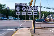 NC 742 was established in 1936 as a new primary routing from US 74 in Wadesboro to NC 205 in Oakboro.[2] Around 1947, NC 742 was extended south, over part of US 74 and NC 109, to the South Carolina state line, where it continues south as SC 742 (originally SC 850).[3] In 1996, the routings of US 52 and NC 742 were adjusted in Wadesboro; they were removed from Salisbury Street and onto a new road further west that crossed over the railroad tracks.[4]