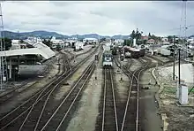 The North Coast railway line is a 1,681-kilometre (1,045 mi) 3-foot 6-inch gauge railway line in Queensland, Australia. It commences at Roma Street station, Brisbane, and largely parallels the Queensland coast to Cairns in Far North Queensland.[1] The line is electrified between Brisbane and Rockhampton.[2] Along the way, the 1680 km railway passes through the numerous towns and cities of eastern Queensland including Nambour, Bundaberg, Gladstone, Rockhampton, Mackay and Townsville. The line though the centre of Rockhampton runs down the middle of Denison Street.