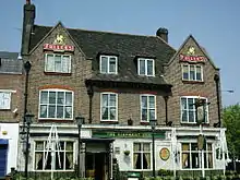 Ballards Lane is an ancient road which was probably named after the Ballard family of about 1300.[3] It did not always connect with the High Road. For many centuries it terminated near where Victoria Park is today. In 1756 a raised way was constructed from the end of Ballards Lane to the High Road, then the Great North Road, making North Finchley a junction. This suggests that Ballards Lane had already become a link in a route from London via Hendon to the Great North Road. There was a beer house in 1814, licensed to provide gunpowder and shot, near the junction.