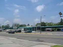 One of the prominent structures in the district is Harold's Steer-In, built in 1951. It is a contributing building even though it was built one year after the era of notability. Originally named Northways Restaurant when it opened in 1951, it became Laughner's Cafeteria from the mid-1950s to 1964, at which time it gained the name Harold's Steer-In. It has remained open since then except for three weeks in 2004 when it seemed to have closed for good until two employees invested in the restaurant and reopened it in time for a special Thanksgiving Day feast for loyal customers. It is one of the few surviving authentic drive-ins left in Indianapolis. Peyton Manning once filmed a commercial for MasterCard in the building in 2005.[2][3]