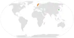 North Korea–Sweden relations (Korean: 스웨리예-조선민주주의인민공화국 관계) are the bilateral relations between North Korea and Sweden. The countries have had diplomatic relations since 7 April 1973. Sweden has had a long-term commitment in North Korea and its relations with the country are exceptionally close among Western nations.[1][2] Sweden is one of the major contributors of humanitarian aid to North Korea.[2]