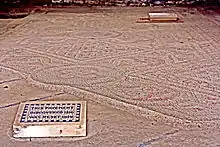 The architect Henry Hakewill excavated the ruins in 1813–16.[3] Professor Francis Haverfield conducted further excavations in 1910.[3] Aerial archaeology in 1943 photographed the previously unknown plan of the southwest wing.[4] Excavations for the Ministry of Public Building and Works in 1958 revealed several phases of occupation and development, starting with Iron Age postholes indicating that the first buildings on the site were wooden.[5] The ruins were further excavated in the 1970s.[3]