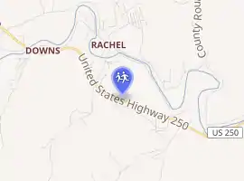 North Marion High School is located approximately fours miles from Farmington, West Virginia on US Route 250 north. While it is closer to the city of Mannington, West Virginia, and is often considered to be located in Rachel, West Virginia, the school mailing address is Farmington. Rachel is a small coal mining community located adjacent to the school, and is an unincorporated municipality.