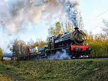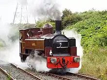 This 0-6-0 saddle tank was built in 1939 as works number 1970 by Peckett and Sons of Bristol for Ashington Coal Company which operated one of Britain's most extensive colliery railway systems. In 1939, two identical locomotives were delivered to one of Peckett's standard designs and they received the names Ashington No 5 & Ashington No 6. The former spent her entire industrial career on the railway for which she was built. In 1969 she was sold by the National Coal Board to North Norfolk Preserved Railway when the Ashington system was dieselised. However, she returned to Northumberland in 1991 and was repainted into the "as delivered to Ashington Colliery" livery. The loco was additionally named Jackie Milburn in honour of the local football hero.[20] The loco is currently out of service for repairs to the bottom end, expected to be complete by 2021.