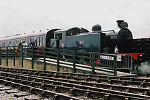 The three ex-British Rail Mk1 carriages are used for the passenger trains. They were used on the Kings Cross suburban lines. They wear BR Midland Maroon Livery.[20] They were preserved by the Bluebell Railway between 1973 and 1975, and were obtained by the museum in 1986.[6][7][8]