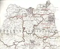 1974–1983: The Urban Districts of Brandon and Byshottles, Crook and Willington, Spennymoor, and Tow Law, the Rural Districts of Lanchester and Weardale, and the parish of Brancepeth in the Rural District of Durham.