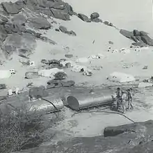 The first use of gas took place on June 8, 1963 against Kawma, a village of about 100 inhabitants in northern Yemen, killing about seven people and damaging the eyes and lungs of twenty-five others.[72] This incident is considered to have been experimental, and the bombs were described as "home-made, amateurish and relatively ineffective". The Egyptian authorities suggested that the reported incidents were probably caused by napalm, not gas. The Israeli Foreign Minister, Golda Meir, suggested in an interview that Nasser would not hesitate to use gas against Israel as well.[73] There were no reports of gas during 1964, and only a few were reported in 1965. The reports grew more frequent in late 1966. On December 11, 1966, fifteen gas bombs killed two people and injured thirty-five. On January 5, 1967, the biggest gas attack came against the village of Kitaf, causing 270 casualties, including 140 fatalities.[74] The target may have been Prince Hassan bin Yahya, who had installed his headquarters nearby.[75] The Egyptian government denied using poison gas, claiming that Britain and the US were using the reports as psychological warfare against Egypt. On February 12, 1967, it said it would welcome a UN investigation. On March 1, U Thant said he was "powerless" to deal with the matter.[76]