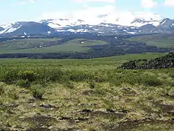 Extensive areas of nearly flat-lying lava flows throughout the Northern Cordilleran Volcanic Province can cover areas of at least 100 km2 (39 sq mi) and are generally composed of highly-fluid basaltic lava. However, lava plains that pre-date the last glacial period have been eroded and overridden by glacial ice, affording a less distinctive form to these older landforms. For example, lava beds at least a million years old in central Yukon contain unconsolidated glacial deposits that were deposited when glacial ice rode on top of the lava flows comprising the lava beds.[10]