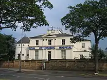 The specialist Royal Orthopaedic Hospital stands on the Bristol Road South, George Cadbury bought the Woodlands, as it was originally called, and gave it to the Crippled Children's Union in 1909 to be used as a hospital. A new £8 million out-patients department was opened in May 2011. The addition contains 24 consultation rooms, treatment rooms and other facilities replaced the temporary out-patients buildings that had been used since 1992.[18]