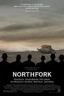 Northfork is a 2003 film directed by Michael Polish and written by Michael and Mark Polish. It premiered at the Sundance Film Festival on January 21, 2003 and later received a limited release in the United States on July 11, 2003.[2] The film stars Duel Farnes, James Woods, Nick Nolte, Michele Hicks, Daryl Hannah, Anthony Edwards, Robin Sachs, Ben Foster, Claire Forlani, Clark Gregg, Kyle MacLachlan and Peter Coyote. This is the brothers' third film collaboration, after Twin Falls Idaho (1999) and Jackpot (2001).