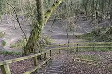 The western area near the entrance has wet clay flora, with alder woodland, sedges, rushes, yellow archangel and star of Bethlehem orchids.[1] Geologically, this is Reading Formation, dating to the Tertiary period. The eastern part is chalk, and an old chalk quarry exposes layers dating to the Cretaceous period.[3]