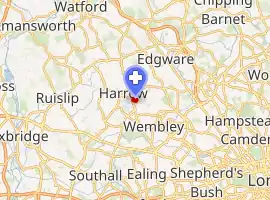 Northwick Park Hospital (NWPH) is a major[1] NHS hospital situated in the town of Harrow, North West London, managed by the London North West University Healthcare NHS Trust. It is located off Watford Road in the London Borough of Brent;[2][3][4] closely bordering the London Borough of Harrow.