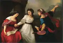Nostell Priory is home to a large collection of Chippendale furniture, all made for the house and commissioned by Sir Rowland Winn 5th Bart and his wife Sabine Winn. Thomas Chippendale was born in Otley in 1718 and had workshops in St Martins Lane, London. The Nostell Priory art collection includes The Procession to Calvary by Pieter Brueghel the Younger, William Hogarth's Scene from Shakespeare's The Tempest - the first depiction in a painting of any scene from Shakespeare's plays - and a self-portrait by Angelica Kauffman, as well as Rowland Lockey's copy of the painting by Hans Holbein (c1527 but now lost) of Sir Thomas More and Family; this copy was commissioned in 1592 by the More family and came to Nostell in the 18th century, and is said to be the most faithful to the destroyed original.[4]
