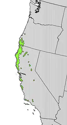 | Notholithocarpus densiflorus range | |