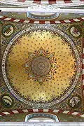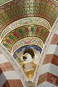 Following the death of Espérandieu on September 11, 1874, Henri Révoil was charged with finishing the interior of the basilica, in particular the mosaics. The construction of the major crypt and installation of the mosaics in the choir was carried out in 1882. Unfortunately a fire on June 5, 1884 destroyed the altar and the mosaic in the choir; moreover the statue of the Virgin was damaged. The statue and the mosaics were restored and the altar was rebuilt according to the drawings of Révoil. On April 26, 1886 cardinal Charles Lavigerie consecrated the new crypt.[57] In 1886, walnut stalls were built in the choir; the last mosaics in the side vaults were finished between 1887 and 1892. In 1897, the two bronze doors of the upper church and the mosaic above them were installed and the statue of the Virgin was regilded for the first time. Final completion of the basilica thus took place more than forty years after the first stone was laid.
