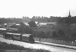 In 1880 Manlove, Alliott & Co. Ltd. built a steam tram at their Bloomsgrove Works in Norton St that was tested on the Nottingham tracks. It was sold to the Dublin and Lucan Steam Tramway Company, for £950 (equivalent to £96,500 in 2019),[6], in 1881. It is reported to have covered its two-mile (3 km) run in ten minutes.