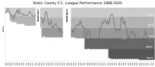Notts County finished third in the top flight of English football in the 1890–91 season, which remains their highest ever league position. They also reached the 1891 FA Cup Final, finishing as runners-up to Blackburn Rovers. However three years later the club won the 1894 FA Cup Final with a 4–1 victory over Bolton Wanderers. From 1897 until 1920 they played in the First Division which was then the top flight, barring the 1913–14 season when they won the Second Division immediately following relegation the previous year. They won the Second Division for a third time in the 1922–23 campaign, before suffering relegations down to the Third Division South, which they won in their first attempt in 1930–31.