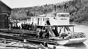 Nowitka was built at Golden, BC for the Golden Columbia River Lumber Company. Nowitka's engines were over 70 years old, and had been originally built for a ferry crossing the St. Lawrence River. The engines had been previously installed in other sternwheelers on the upper Columbia River, including the first Duchess, the second Duchess and Ptarmigan.[2] The blunt-ended bow of Nowitka allowed the vessel to be readily capable of pushing barges, which increased the vessel's utility and effective cargo capacity.[1][3]