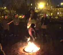 Charshanbe Suri (Persian: چهارشنبهسوری, romanized: čahâr-šanbeh sūrī (lit. "Festive Wednesday") is a prelude to the New Year.[38] In Iran, it is celebrated on the eve of the last Wednesday before Nowruz. It is usually celebrated in the evening by performing rituals such as jumping over bonfires and lighting off firecrackers and fireworks.[39][40]