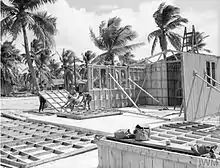 The government decided on 27 July 1954 to begin development of a thermonuclear bomb, and announced its plans in February 1955.[108] British knowledge of thermonuclear weapons was based on the work done at the Los Alamos Laboratory during the war. Two British scientists, Egon Bretscher and Klaus Fuchs, had attended the conference there on the Super (as it was then called) in April 1946, and Chadwick had written a secret report on it in May 1946,[109] but the design was found to be unworkable.[110] Some intelligence about Joe 4 was derived from its debris, which was provided to Britain under the 1948 Modus Vivendi.[111] Penney established three megaton bomb projects at Aldermaston: Orange Herald, a large boosted fission weapon; Green Bamboo, an interim thermonuclear design similar to the Soviet Layer Cake used in Joe 4 and the American Alarm Clock; and Green Granite, a true thermonuclear design.[112]