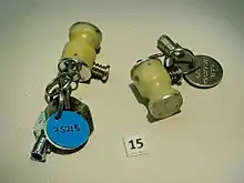 About fifty-eight Blue Danube bombs were produced.[94] The first bombs had plutonium cores, but all service models were modified to use a composite core which used both uranium-235 and plutonium. The bomb had a yield of 10 to 12 kilotonnes of TNT (42 to 50 TJ).[95] The cores were stored separately from the high explosive components in concrete "igloos" at RAF Barnham in Suffolk and RAF Faldingworth in Lincolnshire. Some casings were stored elsewhere in the UK and in Cyprus for "second strike" use.[96] It remained in service until 1962, and was replaced by Red Beard, a smaller tactical nuclear weapon. The Blue Danube cores were recycled, and the plutonium used in other nuclear weapons.[94]
