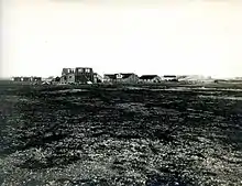 As of 1929 Kings Bay owed NOK 18.6 million to the state and Aalesunds Kreditbank. Thus the state nationalized the company, taking effect on 23 December 1933.[25] A fisheries station opened in 1935, which sold supplies to fishing vessels and carried out steaming of cod liver oil and salting of the cod.[26] As the station was in need of subsidies, it was closed after two years.[27] From 1936 a hotel service targeting tourists opened. Its most elaborate building, Nordpolhotellet, opened on 3 September 1939, although the town was abandoned just days later because of the outbreak of the Second World War.[28] However, this spurred a Norwegian demand for coal, and the town was resettled on 7 May 1941.[29] However, the entire island was evacuated on 29 August, with critical infrastructure blown up.[30]