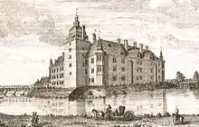 Nykøbing Castle (Danish: Nykøbing Slot), now demolished, was located on today's Slotsbryggen in Nykøbing Falster, Denmark. Completed in 1594 in the Renaissance style, it replaced an earlier building from the 12th century.[1] A royal palace,[2] it was the traditional residence of Denmark's queen dowagers including Margrethe Sambiria (1230?–1282)[3] and Queen Sophie (1557–1631).[4][5] Christopher II died in the castle in 1332.[6]