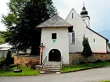In 1944, the village was the site of a mass rescue of some 50 refugees, including 35 Jews who escaped the Holocaust in Slovakia, due to the exhortations of local Slovak Catholic priest Michal Mašlej, who was held in high esteem by the farmers. Preaching that it was their Christian duty to help refugees, Mašlej arranged for persecuted families to hide with various parishioners, and hid the Hartmann family in his personal residence. When German troops had to be quartered in the village, he made sure that they were not placed with any of the families involved in the rescue effort.[3][4] Mašlej's efforts were supported by his Bishop, Pavel Peter Gojdič. When Mašlej was concerned about the danger to his congregants, Gojdič told him: "The support to the persecuted results of charity and it is your duty according to your capacity to help and to provide shelter to the threatened by deportation".[5] Researcher Nina Paulovičová compared Oľšavica to Nieuwlande and Le Chambon-sur-Lignon—other villages where the population banded together to hide Jews—adding that it was "remarkable" that no one informed on the fugitives and none of them were arrested.[4] Mašlej was recognized as Righteous among the Nations by the Israeli official Holocaust memorial, Yad Vashem, in 1997.[3]