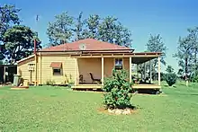 Mary Honara Boland née O'Shea inherited the property after her mother's death in January 1925 when she and her husband were living at Eddington Sliding on the Cloncurry line. In 1931 Mary returned to the O'Shea's large Southbrook property Rockmount after the murder of her husband, Thomas Boland.[2] It is not known if she or other members of the O'Shea subsequently ever resided permanently in this "town house" on the Drayton Warwick Road. In 1960, Mary Boland moved to 42 Clifford Street, Toowoomba, where she died 25 July 1970. As she had not made a will the Drayton cottage and land passed to the Public Trustee. A great grandson of Patrick O'Shea acquired the property at public auction in 1974. By this time the cottage had a slightly pitched short-ridge tin roof and L-shaped front bullnose verandah. The end of the return verandah had been closed-in with fibro and on the northeastern end of the rear verandah was a bathroom.[1]