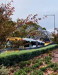 Paradise Interchange is the second station, six kilometres (3.7 mi) from the city centre, in the suburb of Paradise. The terminus before the completion of Stage 2, it is now served by buses from suburban streets, and has a total of 875 car parking spaces in two areas.[14]