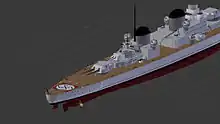They were intended to carry a number of boats aboard, including two picket boats, two barges, two launches, two pinnaces, two yawls, and two dinghies. The ships were also to be equipped with a double catapult mounted between the two funnels, and four Arado Ar 196 seaplanes for maritime reconnaissance. The aircraft were stored in a main hangar just aft of the forward funnel, along with two smaller hangars, one on each side of the rear funnel.[6]