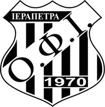 O.F. Ierapetra Football Club, short for Omilos Filathlon Ierapetra (Greek: Όμιλος Φιλάθλων Ιεράπετρας, translated: Ierapetra fans' club) and also simply known as OFI (Greek: ΟΦΙ − not to be confused with OFI Crete based in Heraklion, whose acronym is spelled differently (Greek: ΟΦΗ) in Greek), is a Greek professional football club based in Ierapetra, Lasithi, Crete, Greece. The club was established in 1970, and its traditional colors are black and white. It is the oldest and most successful football club representing the town of Ierapetra, hometown of one of the greatest Cretan players of all time: Petros Vouzounerakis,[1] of whom the club's home ground is named after (Ierapetra Municipal Stadium «Petros Vouzounerakis»). The club currently competes in the Super League 2, the second tier of the Greek football league system.
