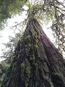 The park features an unusual quantity of trees over 150 feet tall, including grand firs, black cottonwoods, western hemlock, and cedars. Many Douglas firs stand over 200 feet tall, and are among the tallest trees in the Seattle area.[7] One of the Douglas firs is "Sylvia", a 600-year-old specimen over 26 feet (7.9 m) in circumference,[8] once the largest fir tree in King County; it was 255 feet (78 m) tall until the 1993 Inauguration Day windstorm topped it.[2][3][9]