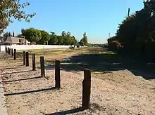 West of downtown Santa Ana, the original 100-foot (30 m) wide right of way – purchased by OCTA after its abandonment – remains as a strip of vacant land extending diagonally across Orange County's cardinal street grid, from Santa Ana northwest to Cypress/La Palma on the Los Angeles County line. Although OCTA has allowed some temporary uses (such as parking) in the historic right of way, and most of the tracks have been removed, the authority always intended to return this corridor to transit use in the future.[19]
