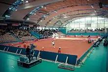 In 1982, the team was renamed to Paloma Branik due to sponsorship agreement with the local tissue paper company Paloma from Sladki Vrh. In the 1984–85 season, Branik managed to win the Yugoslav national title for the third time in their history, first since 1953. The decisive match was played against Partizan in the newly built Tabor Hall, in front of 4,000 spectators, where Branik won 3–0.[21] In the following season, Paloma Branik defended the title and won their fourth and final Yugoslav national title before the breakup of the country.[22] Between 1983 and 1991, Paloma Branik reached the final of the Yugoslav Cup eight times, but lost on all eight occasions. During the 1980s, the team started competing in the international competitions; their biggest achievement was reaching the second round of the European Cup Winners' Cup in the 1987–88 season, where they were eliminated by the Soviet side WVC CSKA Moscow.[23]