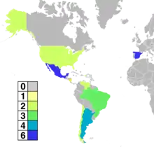 1974 Dutch Antilles, Ecuador, El Salvador, United States, Guatemala, Honduras, Nicaragua.