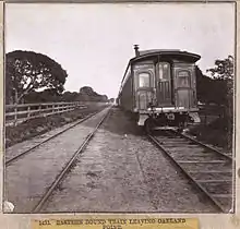 The Central Pacific Railroad bought the wharf and adjacent properties in 1868, and subsequently constructed the Oakland Long Wharf, a massive terminus for the Transcontinental Railroad.[1] In the 1880s, the Long Wharf was purchased and re-engineered by the Southern Pacific Railroad as the Oakland Mole, obliterating Oakland Point.