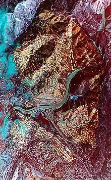 ![]() Infrared aerial photograph of the firestorm. The Highway 13/24 intersection is at center. | |