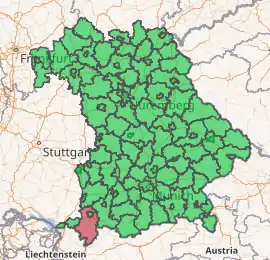 Oberallgäu is a Landkreis (district) in Swabia, Bavaria, Germany. It is bounded by (from the north and clockwise) the districts of Unterallgäu and Ostallgäu, the Austrian states Tyrol and Vorarlberg, the district of Lindau, and the state of Baden-Württemberg (district Ravensburg). The city of Kempten is enclosed by but does not belong to the district.