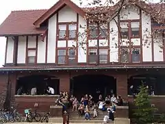 Fairchild, known on campus and by its members as "Fairkid," is a dining-only co-op that opened in 1977 in the basement of Fairchild Hall. Members are referred to as "Fairkids." Fairchild Hall is a dorm on South Campus and is not affiliated with the co-op. A student survey determined that students were interested in a healthier dining option, so Fairchild opened as an "all-natural" co-op.[9] Its legacy continued as such with a strict food policy that eliminated food such as meat, bananas, and coffee for socio-political reasons reaffirmed by its socially conscious membership each semester.[10] Its membership began a tumblr called The Justice Goats in Spring 2012 in an effort to preserve its history.[11] In Spring 2015 the membership voted to rebuild Fairchild's food policy from the ground up, and as of Spring 2016 discussions are underway regarding a new, less restrictive food policy. Until Spring of 2017, the co-op shared its space with Brown Bag Co-op, a grocery-store style co-op for students living in village or off-campus housing.[12]