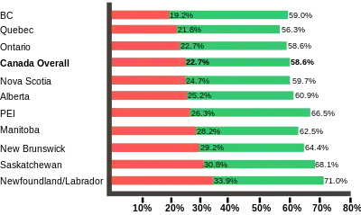 As of 2016, 16% of British Columbians are obese, making it the province with the lowest rate of obesity in Canada. The Northwest Territories have the highest obesity rate, at 33.7%.[6]