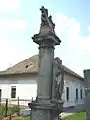 Sculpture in front of the Catholic Church.