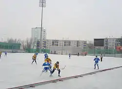 The settlement is also well known as one of the bandy centres of Russia. Many players from Obukhovo has become World Champions. Sportivny Klub Obukhovo[7] is the only club outside the highest division of Russian Bandy Super League to have an artificial ice.[8] Obukhovo has hosted several Youth World Championships. In February 2011 it was for Girls-17,[9] in December 2011 for Boys-23, in which the Russian team was victorious after beating Sweden after extra-time in the final[10] and in 2013 the same tournament.[11]