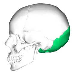 ![]() Position of occipital bone (shown in green) | |