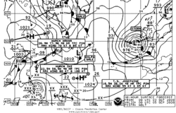 Within the United States National Weather Service (NWS), forecast weather maps began to be published by offices in New York City, San Francisco, and Honolulu for public use. North Atlantic forecasts were shifted from a closed United States Navy endeavor to a National Weather Service product suite via radiofacsimile in 1971, while northeast Pacific forecasts became publicly available by the same method in 1972.[7] Between 1986 and 1989,[8] the portion of the National Meteorological Center (NMC) known as the Ocean Products Center (OPC) was responsible for marine weather forecasting guidance within the NWS.[9] Between August 1989 and 1995, the unit named the Marine Forecast Branch also was involved in providing objective analysis and forecast products for marine and oceanographic variables.[10][11]