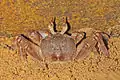 The characteristic "horned" eyes of O. ceratophthalmus are not unique to the species, and it should not be confused with other ghost crabs which also exhibit "horns" on the end of their eyestalks such as O. cursor, O. gaudichaudii, O. macrocera, O. mortoni, O. rotundata, and O. saratan.[5]
