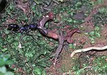 | Odontoponera sp. feeding on an earthworm | |