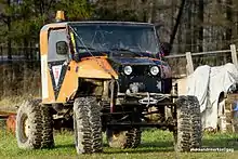 Rock crawling is a category of off-roading. Vehicles used for rock crawling are usually modified with different tires, suspension components that allow greater axle articulation, and changes in the differential[5] gear ratio in order to obtain characteristics suitable for low speed operation for traversing obstacles. It is common for a rock crawler to have a "spotter", who is an assistant on foot by the vehicle to provide information to the driver about the areas out of sight to the driver.[6]